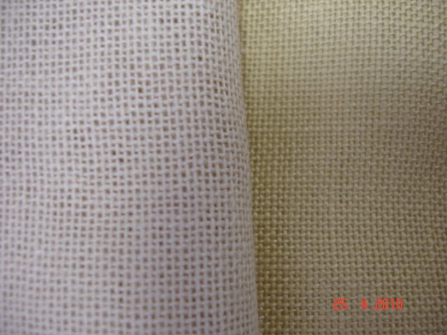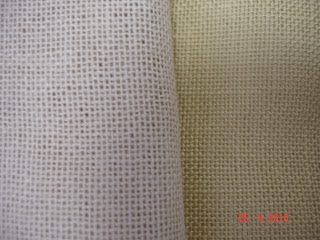 O tecido tem uma trama bem fininha mesmo (28ct), aqui dá para ver a comparação com o outro cânhamo em que estou bordando o SAL Spring Snapperland, por exemplo. Sei que existem outras tramas mais fininhas, mas tenho certeza que essa é o meu limite!